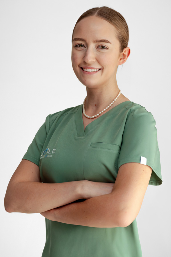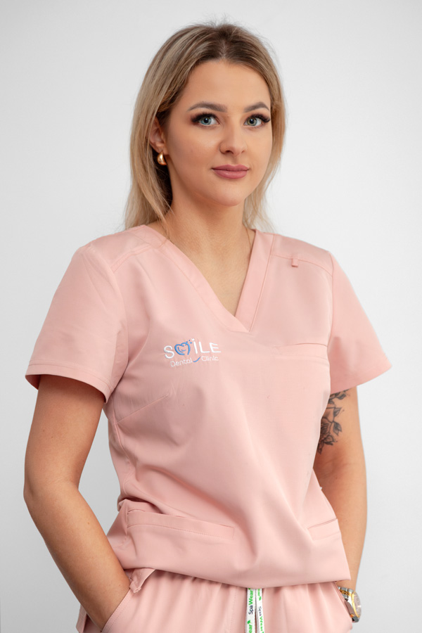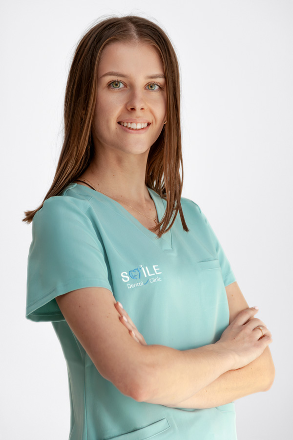Absolwentka Uniwersytetu Medycznego w Białymstoku. Zajmuje się zabiegami z zakresu stomatologii zachowawczej oraz stomatologii estetycznej. Uwielbia pracę z dziećmi i stara się by mali pacjenci jak najlepiej zapamiętali wizytę w gabinecie stomatologicznym. W swojej pracy stawia na dokładność oraz indywidualne podejście do pacjenta.